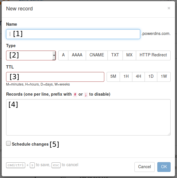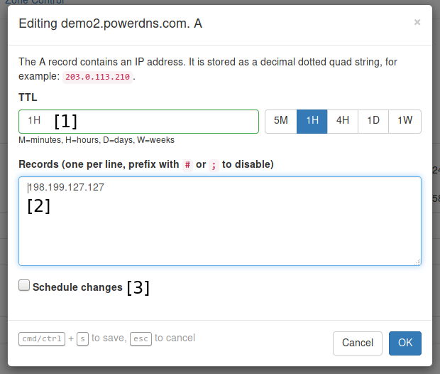 Any changes made to the zone in this window are not directy sent to the PowerDNS Authoritative Server, but kept within the browser.